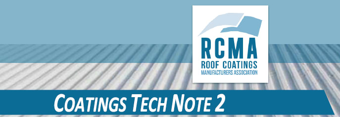 | Note: The contents of this Coatings Tech Note were prepared by the Roof Coating Manufacturers Association and approved for distribution by the RCMA Board of Directors. RCMA makes this content available “as is” and makes no guarantees or warranties of any kind as to its completeness, accuracy or timeliness. It is made available for general informational purposes only. The information provided is not intended to revoke or change the requirements or specifications set by individual roofing material manufacturers or authorities having jurisdiction in your area. Any questions or inquiries about the requirements or specifications of a manufacturer should be directed to the roofing manufacturer concerned. |