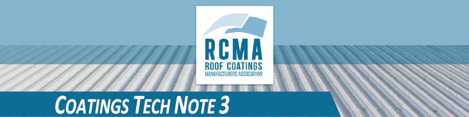 Note: The contents of this Coatings Tech Note were prepared by the Roof Coating Manufacturers Association and approved for distribution by the RCMA Board of Directors. RCMA makes this content available “as is” and makes no guarantees or warranties of any kind as to its completeness, accuracy or timeliness. It is made available for general informational purposes only. The information provided is not intended to revoke or change the requirements or specifications set by individual roofing material manufacturers or authorities having jurisdiction in your area. Any questions or inquiries about the requirements or specifications of a manufacturer should be directed to the roofing manufacturer concerned. |
