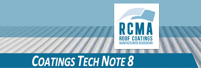 Note: The contents of this Coatings Tech Note were prepared by the Roof Coating Manufacturers Association and approved for distribution by the RCMA Board of Directors. RCMA makes this content available “as is” and makes no guarantees or warranties of any kind as to its completeness, accuracy or timeliness. It is made available for general informational purposes only. The information provided is not intended to revoke or change the requirements or specifications set by individual roofing material manufacturers or authorities having jurisdiction in your area. Any questions or inquiries about the requirements or specifications of a manufacturer should be directed to the roofing manufacturer concerned.